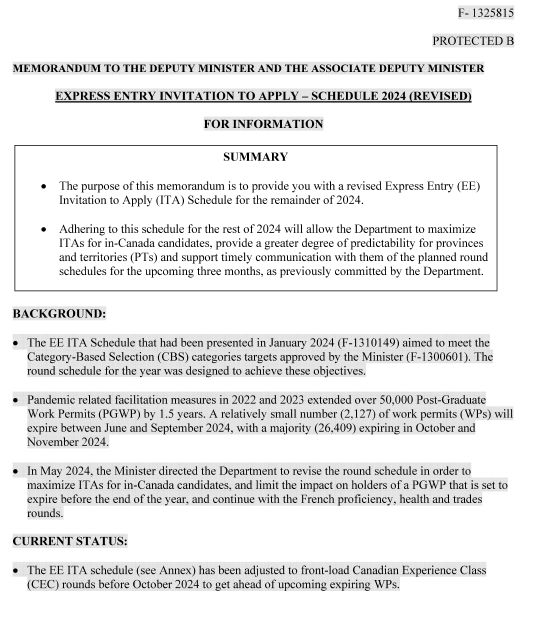 The recently obtained ATIP notes (courtesy @smeurrens) now remove all doubts that its the end of the track for STEM, Agri and Transport for 2024. These notes reflect upon the plan for schedule of ITAs for 2024 by laying emphasis on #CECs to reduce the CRS to 500 and in the