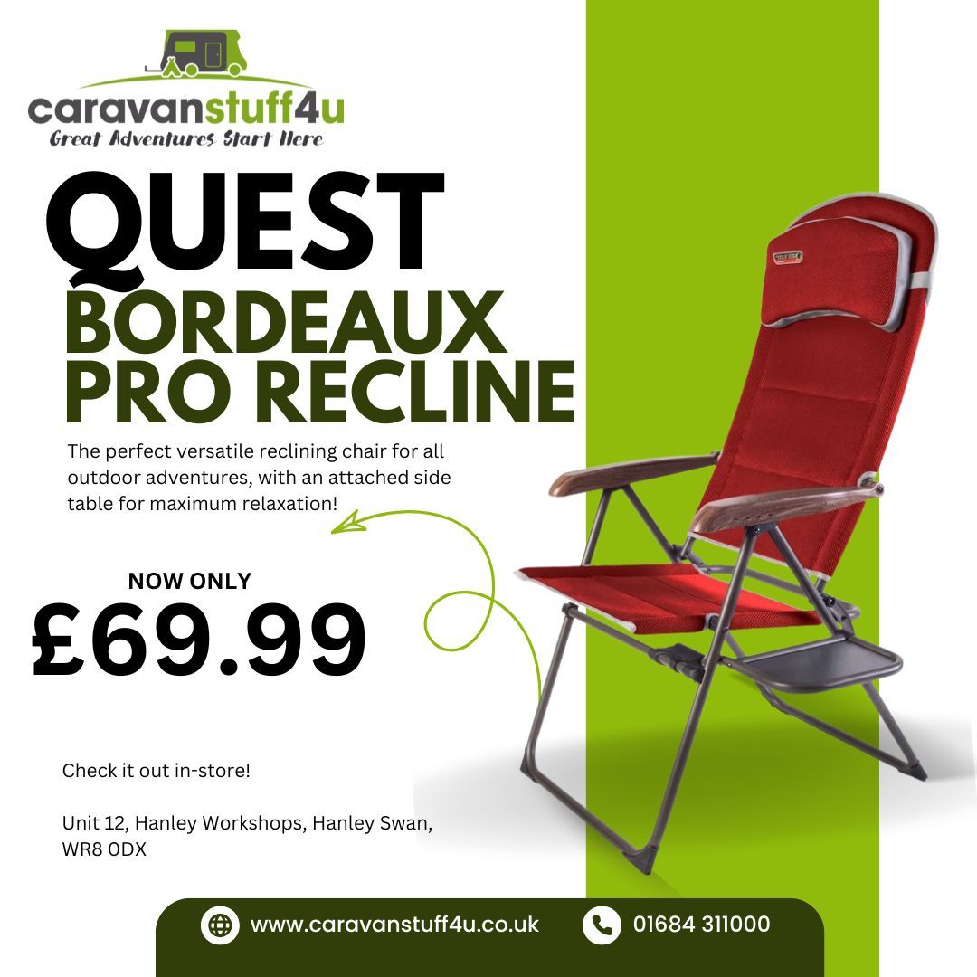 ⛺ Check out this stunning Quest Bordeaux Pro Recline with Side Table on our website or come and test it in-store today!⛺ #quest #chair #caravan #campervan #motorhome