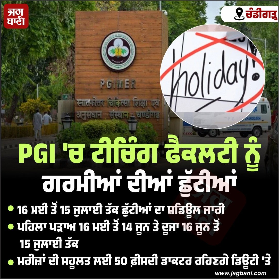 ਚੰਡੀਗੜ੍ਹ PGI 'ਚ ਟੀਚਿੰਗ ਫੈਕਲਟੀ ਨੂੰ ਗਰਮੀਆਂ ਦੀਆਂ ਛੁੱਟੀਆਂ #Chandigarh #PGI #TeachingFaculty #SummerVacations #Schudule
