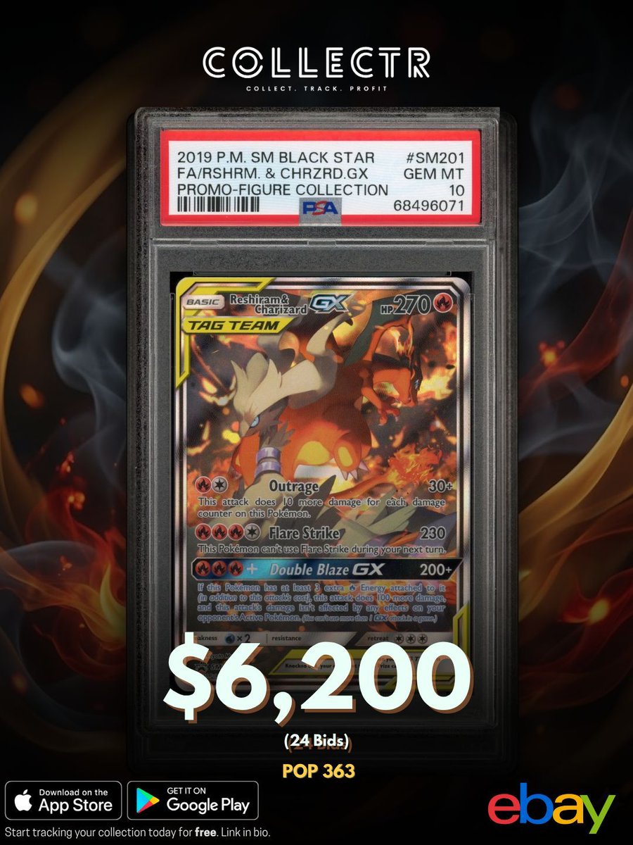 A PSA 10 Reshiram & Charizard GX from the Reshiram & Charizard GX Figure Collection just sold on eBay for $6,200. #collectr #reshiram #charizard #psa10 #pokemontcg