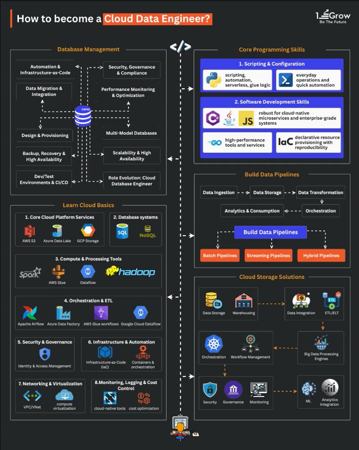 🚀 𝑼𝒏𝒍𝒐𝒄𝒌 𝒕𝒉𝒆 𝒔𝒆𝒄𝒓𝒆𝒕 𝒕𝒐 𝒃𝒖𝒊𝒍𝒅 𝒔𝒄𝒂𝒍𝒂𝒃𝒍𝒆 𝒂𝒏𝒅 𝒔𝒆𝒄𝒖𝒓𝒆 𝒄𝒍𝒐𝒖𝒅 𝒅𝒂𝒕𝒂 𝒔𝒚𝒔𝒕𝒆𝒎𝒔. 𝒀𝒐𝒖𝒓 𝒓𝒐𝒂𝒅𝒎𝒂𝒑 𝒕𝒐 𝒔𝒖𝒄𝒄𝒆𝒔𝒔 𝒔𝒕𝒂𝒓𝒕𝒔 𝒉𝒆𝒓𝒆! Follow 👉@1stepGrow for more roadmaps & insights! #CloudDataEngineer #1stepGrow
