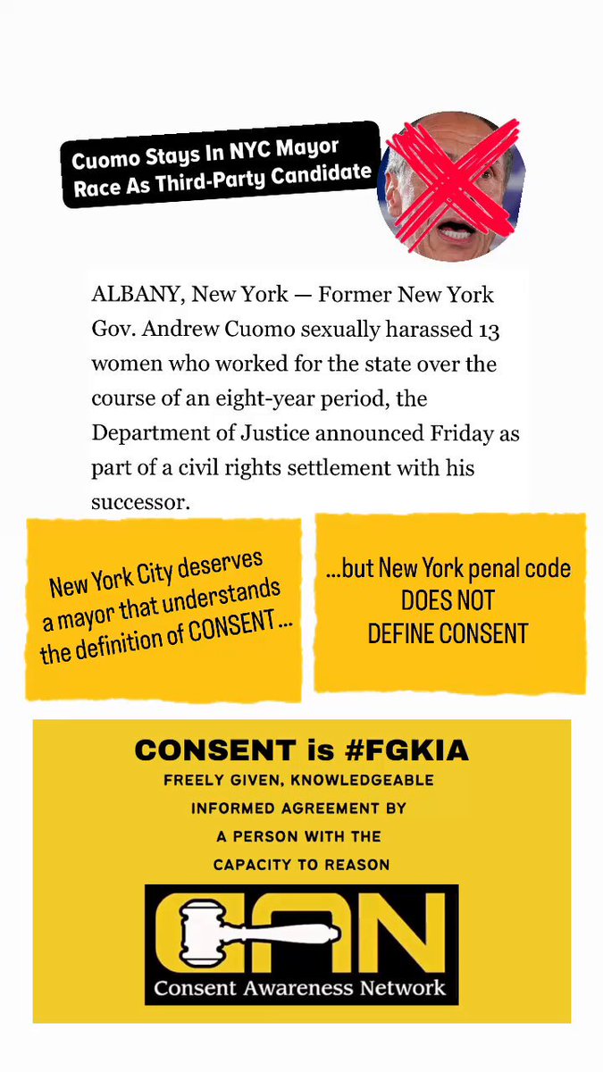 Maybe #AndrewCuomo doesn't understand the definition of CONSENT because it's NOT DEFINED IN NEW YORK STATE LAW? Sign the petition to #CodifyConsent in penal code: l.ead.me/ConsentPetition