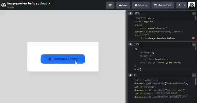 Input button upload image preview HTML CSS JavaScript #coding #codingmaker #coder #webdev #websitedesign #website #webapp #progress #development #developers #facebookdevelopercircles #appdeveloper
