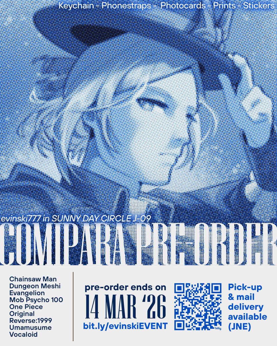 (1/3) ๐ Shares are appreciated ๐ ๐ข COMIPARA6 & Mail order open ๐ข ๐bit.ly/evinskiEVENT ๐ Ends on 14 March 2026 ๐ฆ Delivery with JNE from Bantul, Jogja ๐ฎ๐ฉ Shipping to Indonesia only ๐ More info on the form #comipara #comicparadise #comipara6