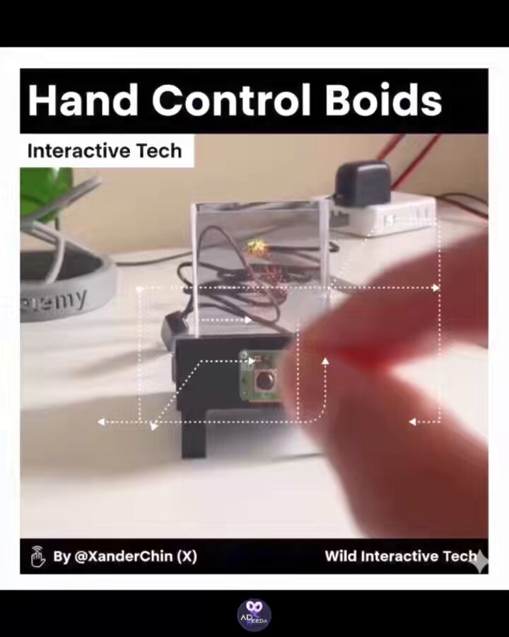 Hand-controlled boids using a Raspberry Pi camera — move your hand and a digital flock follows instantly. Wild interactive tech by @XanderChin (X). #Python #ComputerVision #RaspberryPi #CreativeCoding #TechInnovations #adkeeda