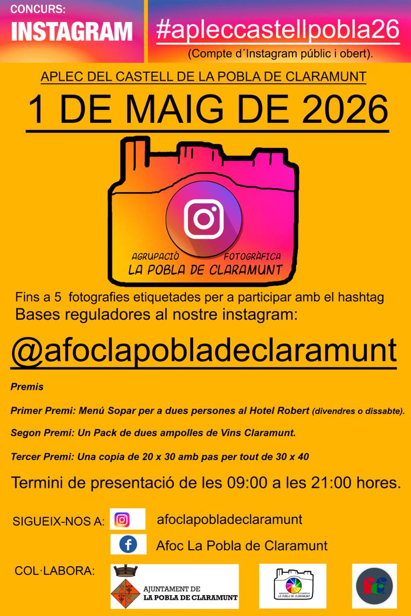 📸L’Agrupació Fotogràfica la Pobla us convida a participar en el concurs fotogràfic de l'Aplec del Castell! 📅 01 de Maig ⏰ Termini de presentació de 9 a 21 h. Fins a 5 fotografies ‼️Etiqueta: #apleccastellpobla26 / @afoclapobladeclaramunt #lapobladeclaramunt #concurs