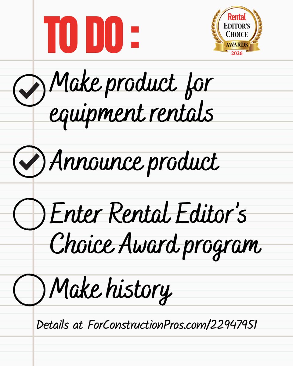 .@RentalPNI has opened submissions for this year's Editor's Choice Award - entry is free and open for all #constructionequipment and #generaltool OEMs - details at forconstructionpros.com/22947951