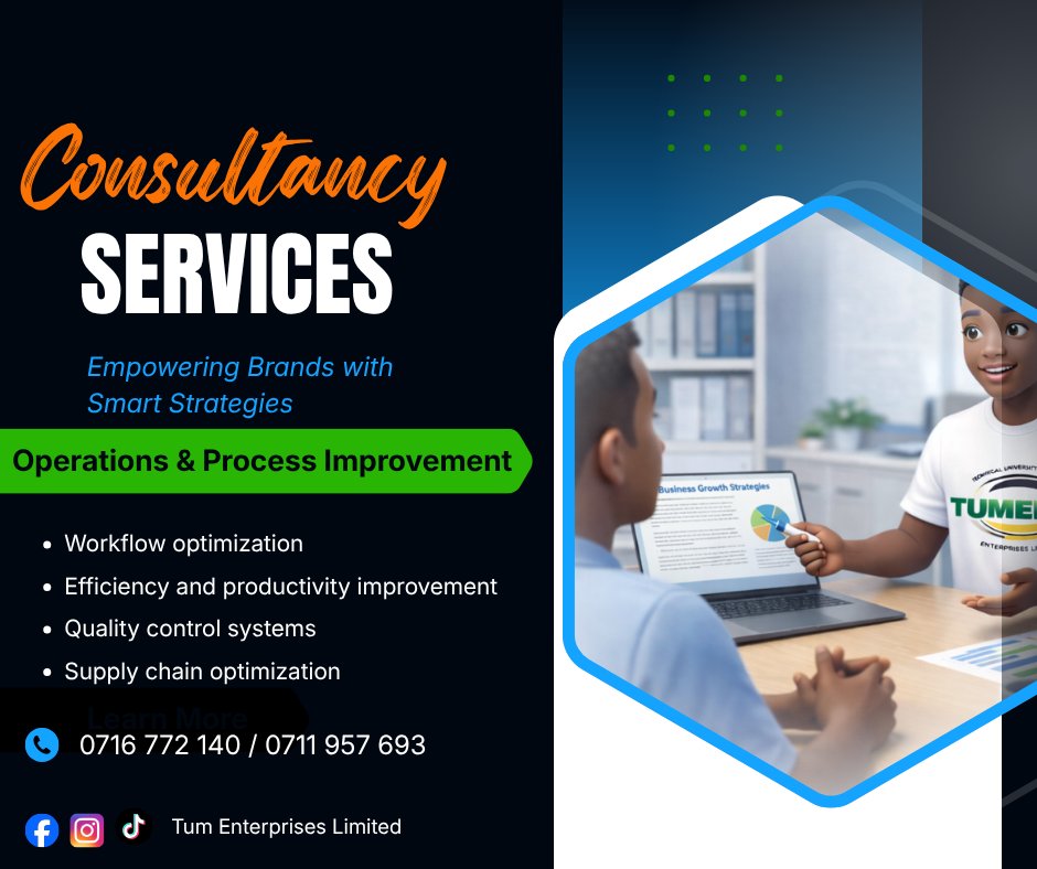 Struggling with growth, profits, or direction? Tum Enterprises Limited delivers expert consultancy solutions that turn challenges into measurable success. 👉 Book a consultation today. 📞 +254 716 772 140 / 0711957 693 📍 Tudor , Mombasa -Obote AV #consultant #consultancy