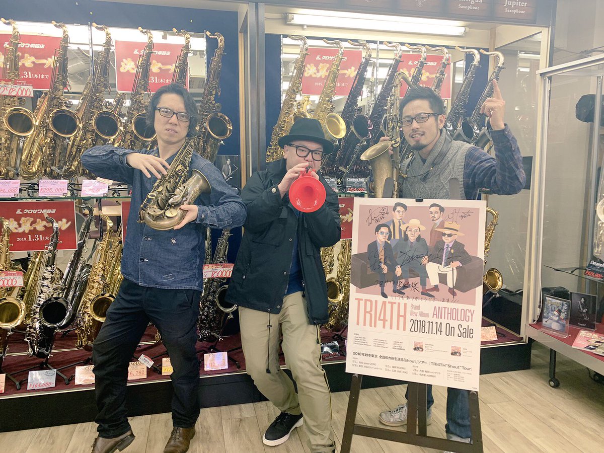 クロサワウインドにて、リハをしていたじゅんじゅん&たけうっちゃんに遭遇。そしてプラスチックトランペット「Cool Wind」をゲットしました! その後レコーディングに行くとカラフルな御二方がいたので撮影!まるで服かのように似合っている。 #coolwind #原田真之輔 #岡村トモ子 #TRI4TH