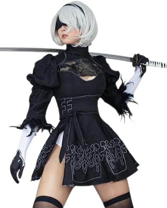 2B Cosplay NieR Automata YoRHa No.2 Type B Game Outfit Anime Halloween Women Costume Sexy Black Dress Includes: Dress, Blindfold, Gloves, Panties, Stockings ON SALE HERE: amzn.to/3RlgY9D #cosplay #costumes #outfit