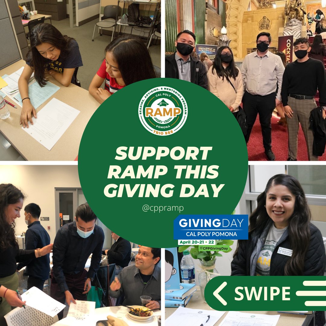 RAMP is participating in #CPPGivingDay this year. Giving Day starts today and ends tomorrow, April 21, at 9pm! If you would like to show your support for RAMP and TRIO students, please consider donating to or sharing this link: givingday.cpp.edu/giving-day/481… #CPPRAMP #TRIOSSS #TRIOworks