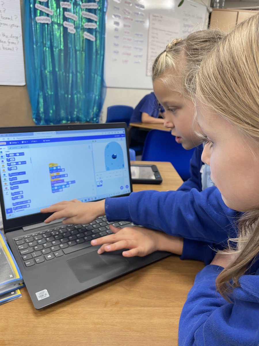 I’m loving this computing group - they are so motivated and resilient when coding in Scratch! Today we coded a ghost sprite to appear, disappear, grow, glide and talk! #cpscomputing #cpsenhance