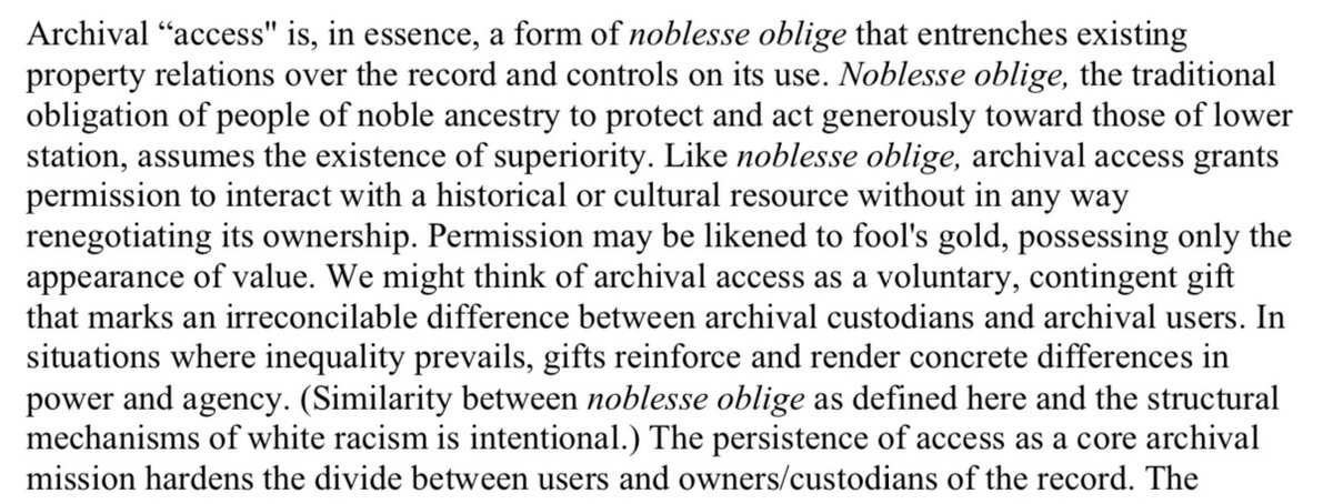 For an undergrad course "Archives: Power, Justice & Inclusion," I'd appreciate any thoughts on liberatory readings for students (esp. students of color), some of whom may be thinking for the first time about what archives are and what they (can) do. Thank you. #critarch #critlib