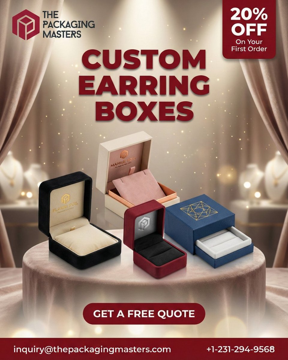 Boost Jewelry Sales With Eye-Catching Custom Earring Boxes Make your brand stand out with stylish earring packaging. Order custom wholesale boxes today from BoxLark! boxlark.com/custom-earringโฆ #CustomEarringBoxes #JewelryPackaging #BoxLark #CustomBoxesUSA #Design #PackagingIdeas
