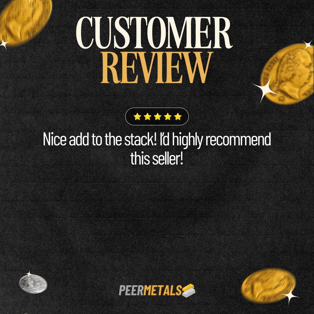 "Nice add to the stack! I’d highly recommend this seller!" ⭐⭐⭐⭐⭐ Thanks, Blue! Real reviews from real customers like you fuel PeerMetals. Find your next trusted piece for your stack. Visit PeerMetals.com today! #PeerMetals #PreciousMetals #CustomerReview #Stack…