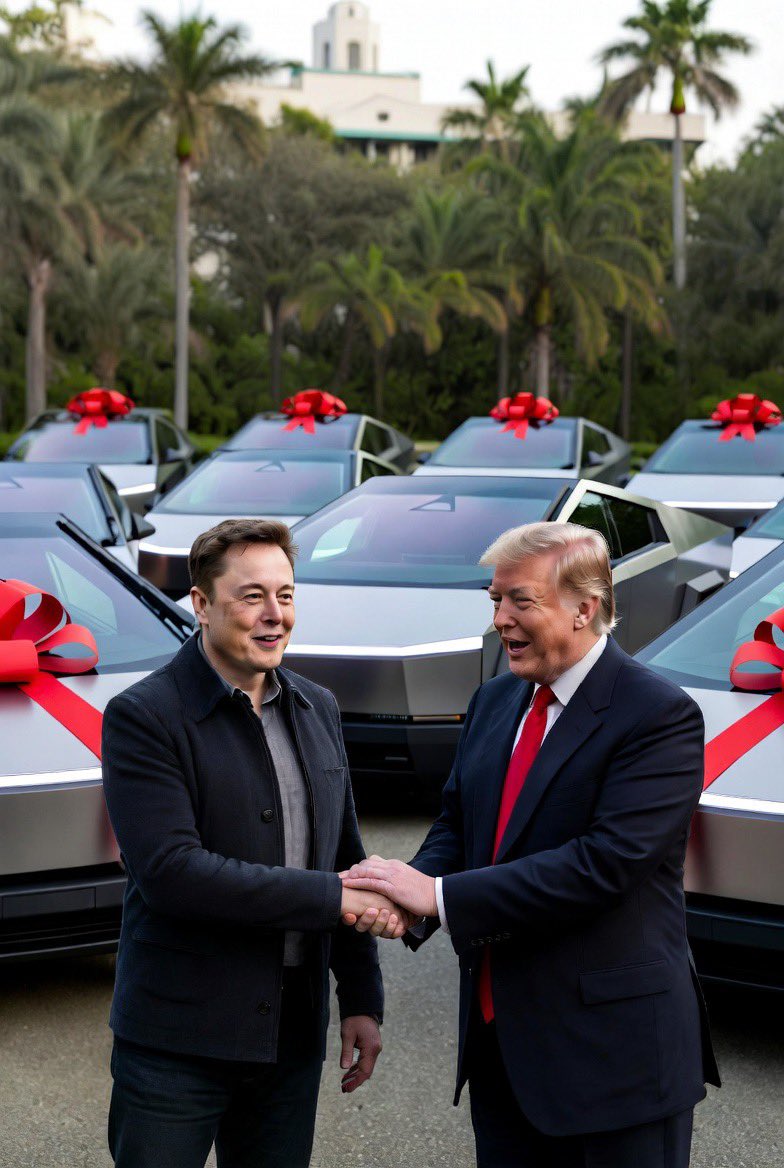CONGRATULATIONS: Donald Trump🇺🇸just coped 10 brand new cybertruck from Elon musk🚘🎉 #cybertruck #donaldtrump #elonmusk
