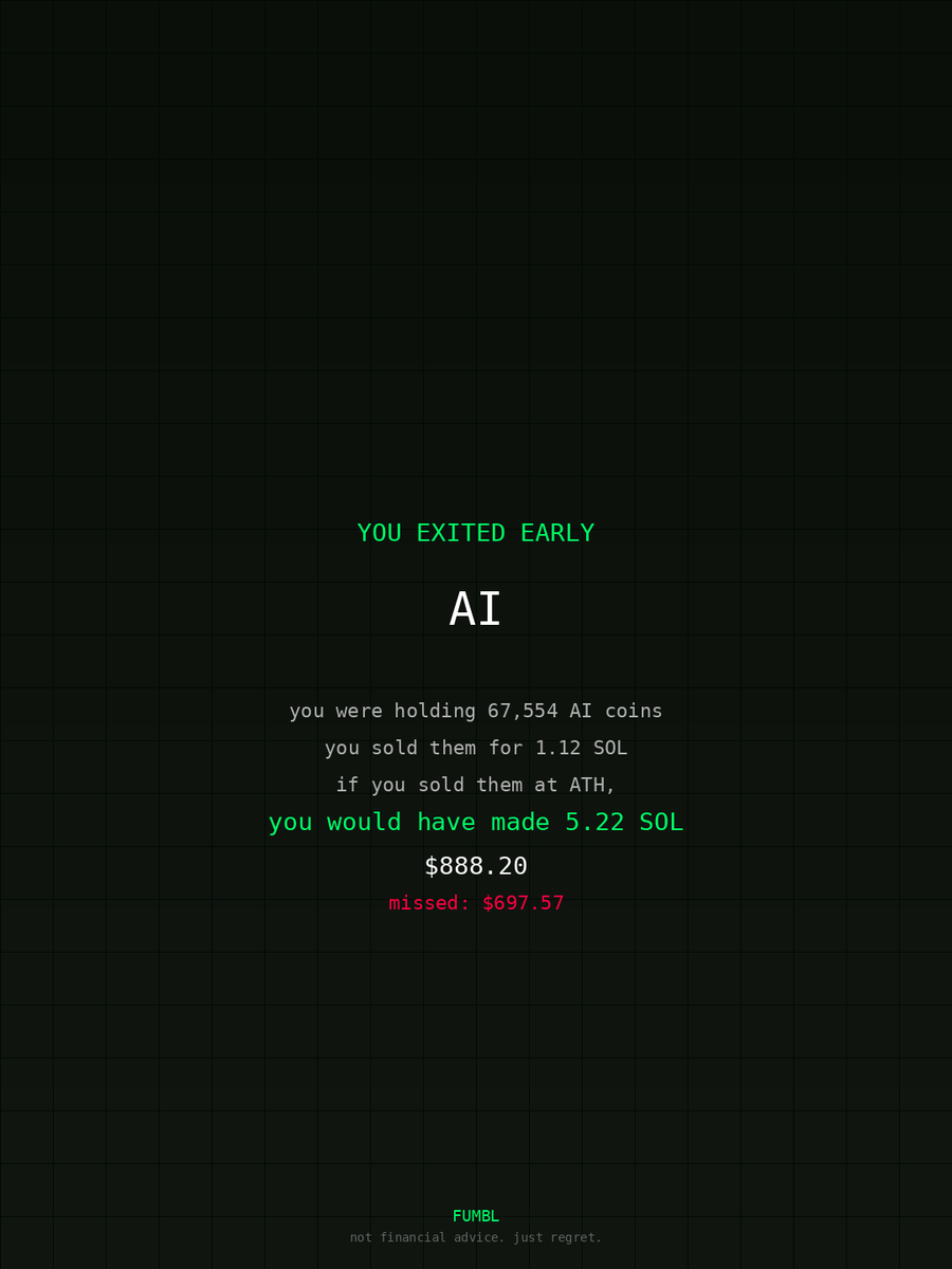 Why didn’t I hold on $AI brooo used fumbledbags.com to see btw EYN1reHEz8SntbbGsVaxsVRWAExu1rGtDpy4pmBJE4Qe #solflare #degen