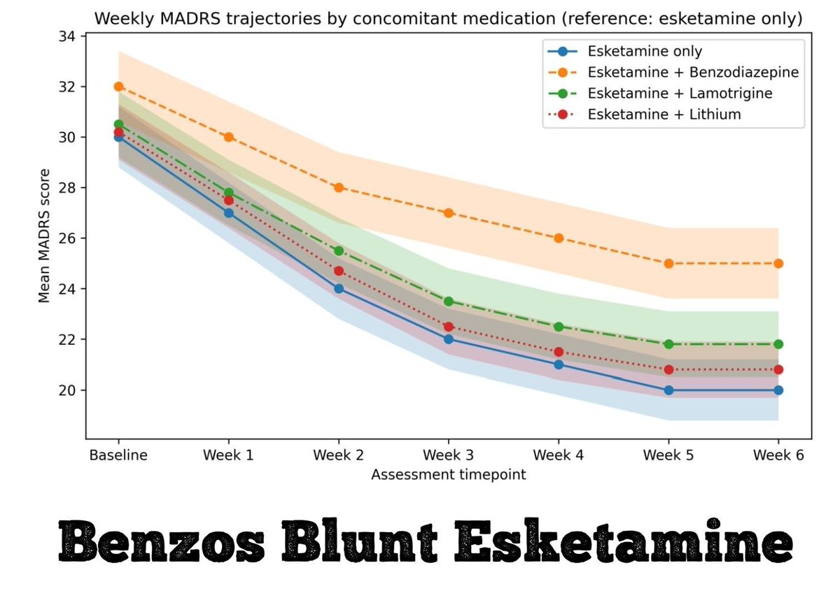 A few meds might keep #ketamine and #esketamine from working in #depression: ▪ Lamotrigine ▪ Lithium ▪ Benzos This new study compares them, finding that only the benzo blunted response: psych-partners.com/benzodiazepine… Not randomized, but supported by other trials and basic science.