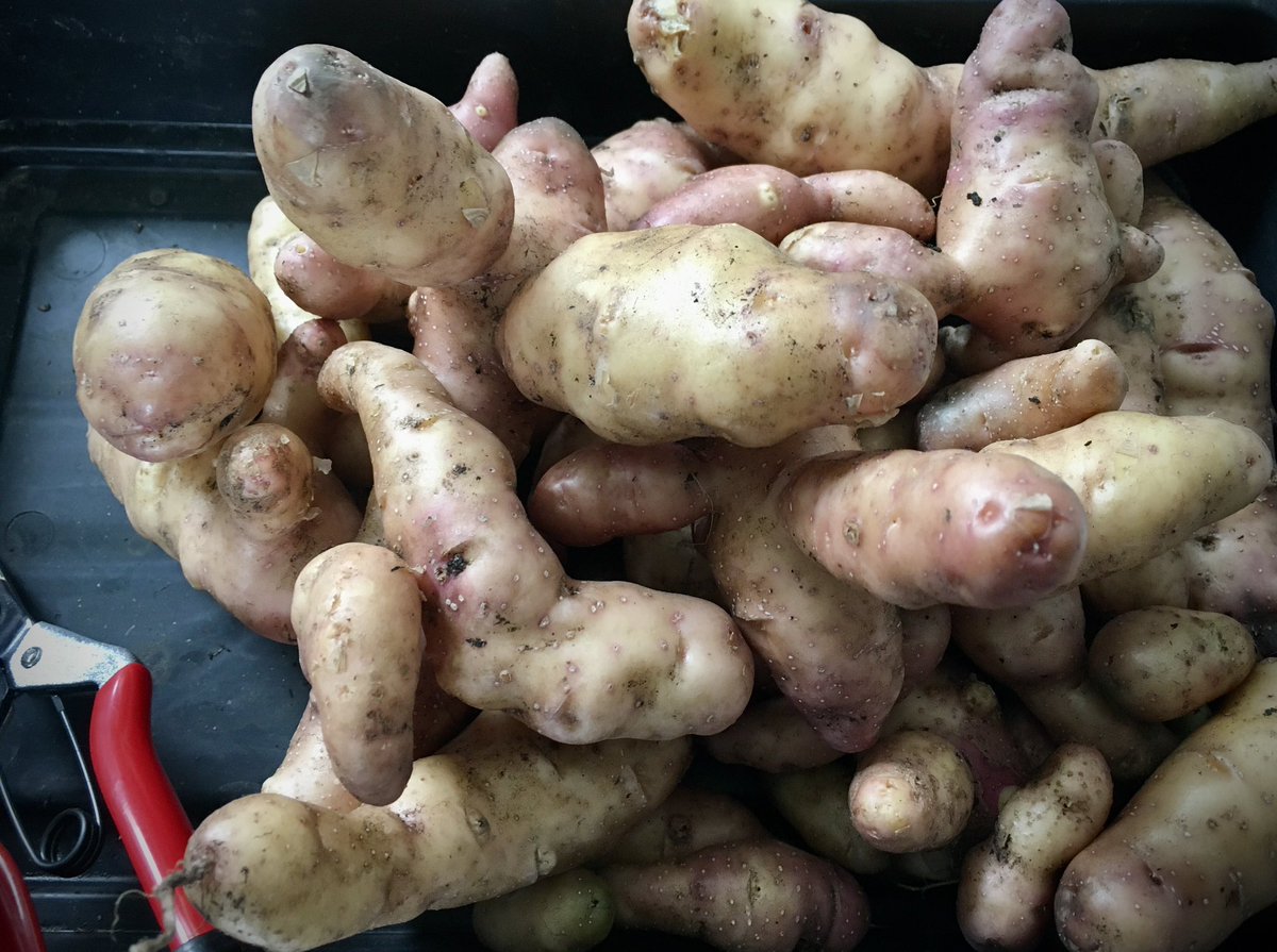 The ‘Pink Fir Apple’ potatoes have produced a nice crop here at The Devon Patch, grown in buckets with another 2 buckets yet to harvest! #devonpatch #pinkfirapplepotatoes #gardening #vegetablegardening