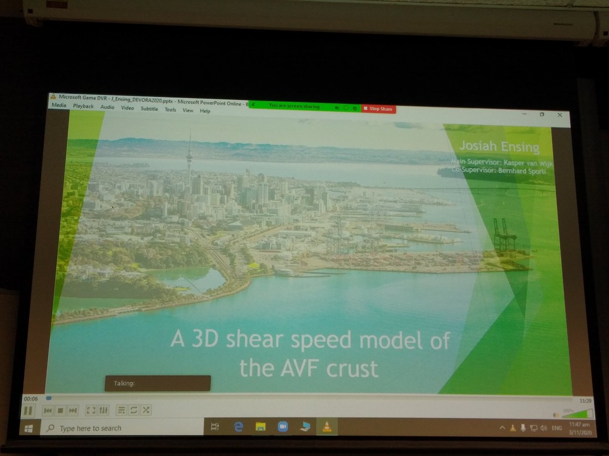 Next up newly minted Dr Josiah Ensing discusses the research from his PhD on shear speed modelling of the crust below the #aucklandvolcanicfield. #devorum13 #ambientseismicnoise