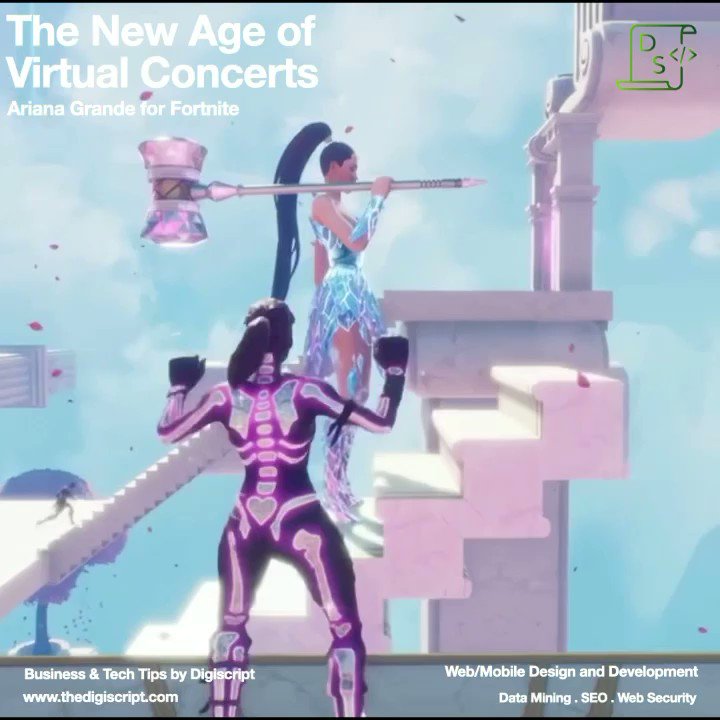 The online video game, Fortnite recently hosted Ariana Grande for a virtual concert. With the rapid growth of Augmented/Virtual reality, what do you think virtual concerts are going to look like in the future? #digiscript #mixedreality