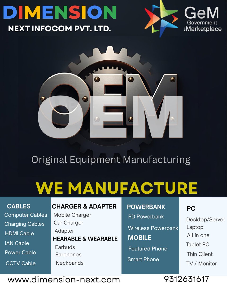 🚀 Build your own brand with Dimension Next Infocom Pvt. Ltd.! From cables to chargers, powerbanks to PCs — we manufacture it all with precision and quality. Your brand, our expertise. 💪 🌐 dimension-next.com #DimensionNext #MakeYourOwnBrand #ElectronicsManufacturing #OEM
