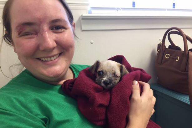 Shooting victim who lost her eye adopts one-eyed puppy who no one wanted. #Survivors #DogsLife #DogsOfJoy💞