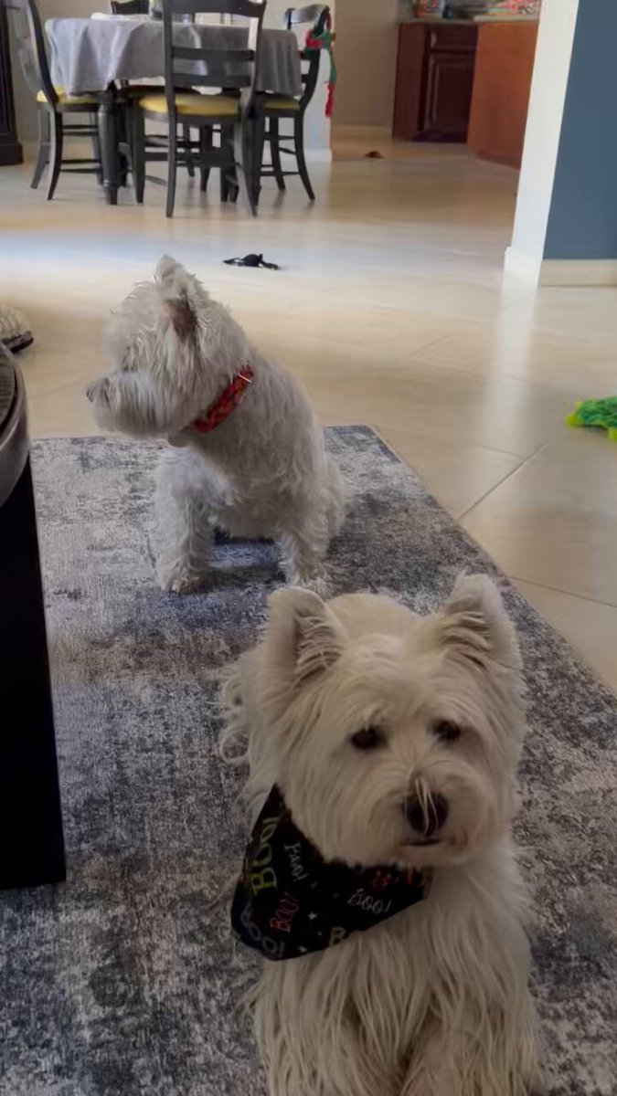 Daisy temper tantrum convince lazy hooman to take us for walkies. Or was it my begging eyes🤔#westie #dogsoftwitter