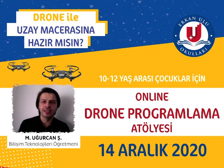 10-12 yaş arası öğrenciler için düzenlediğimiz #DroneProgramlama atölyemizi, gelen yoğun talep üzerine 3. defa düzenliyoruz. 14 Aralık Pazartesi günü saat 17.00’de gerçekleşecek atölyemize kayıt için [email protected] adresine iletişim bilgileriniz ile başvurmanız yeterli.