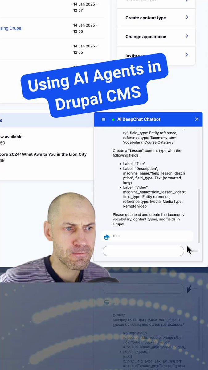 While experimenting with AI agents in Drupal CMS for tomorrow's big launch, I was amazed by its capabilities. Watch this video where I demonstrate how to create content types and fields using only chat prompts. #drupal #drupalcms ~~~ ♻️ Please repost and follow. 📧 Join our…