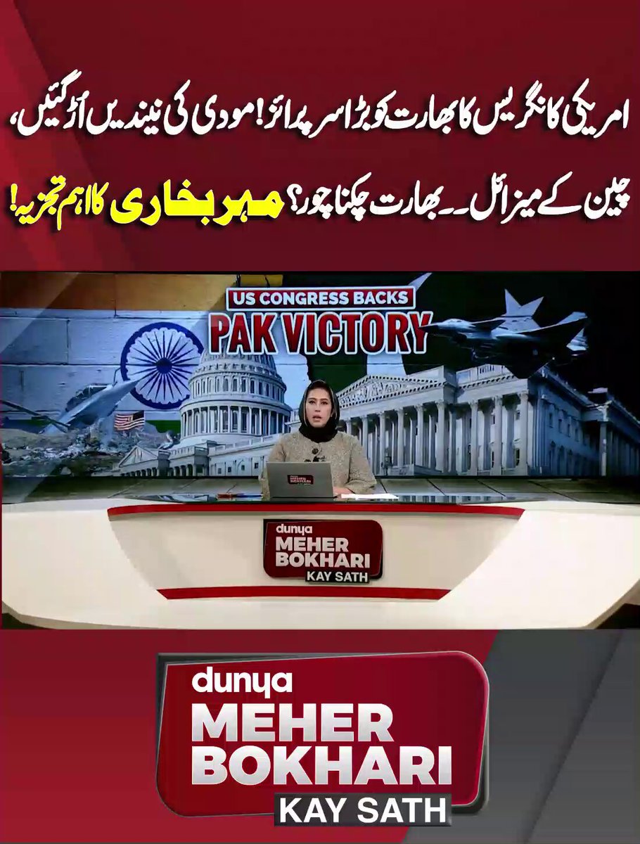 امریکی کانگریس کا بھارت کو بڑا سرپرائز!مودی کی نیندیں اُڑ گئیں، چین کے میزائل ۔۔بھارت چکناچور؟مہر بخاری کا اہم تجزیہ! #dunyanews #meherbokhari #dunyaprograms #dunyameherbokharikaysath @meherbokhari