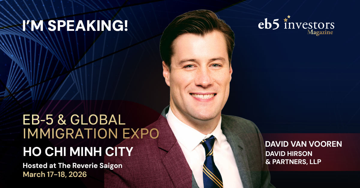 We are proud to announce that David Van Vooren of David Hirson & Partners will be a speaker at our EB-5 Expo in Ho Chi Minh City, Vietnam, on March 17-18, 2026! Book your tickets now: eventbrite.com/e/2026-eb-5-gl… #eb5 #eb5visa #eb5program #eb5investor #visa #vietnam #hochiminhcity