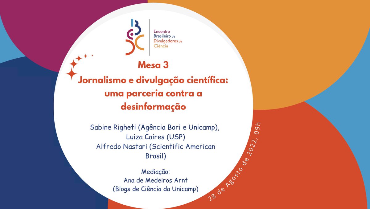 É daqui a pouquinho! Mais uma grande mesa na continuação do #EBDC com as grandes @binerighetti (@Labjor_Unicamp e @agencia_bori), @luizacaires3 (@cienciausp), o grande Alfredo Nastari (@sciambrasil), com mediação da super @ntsnaleatorias (@BlogsUnicamp). Bora lá!