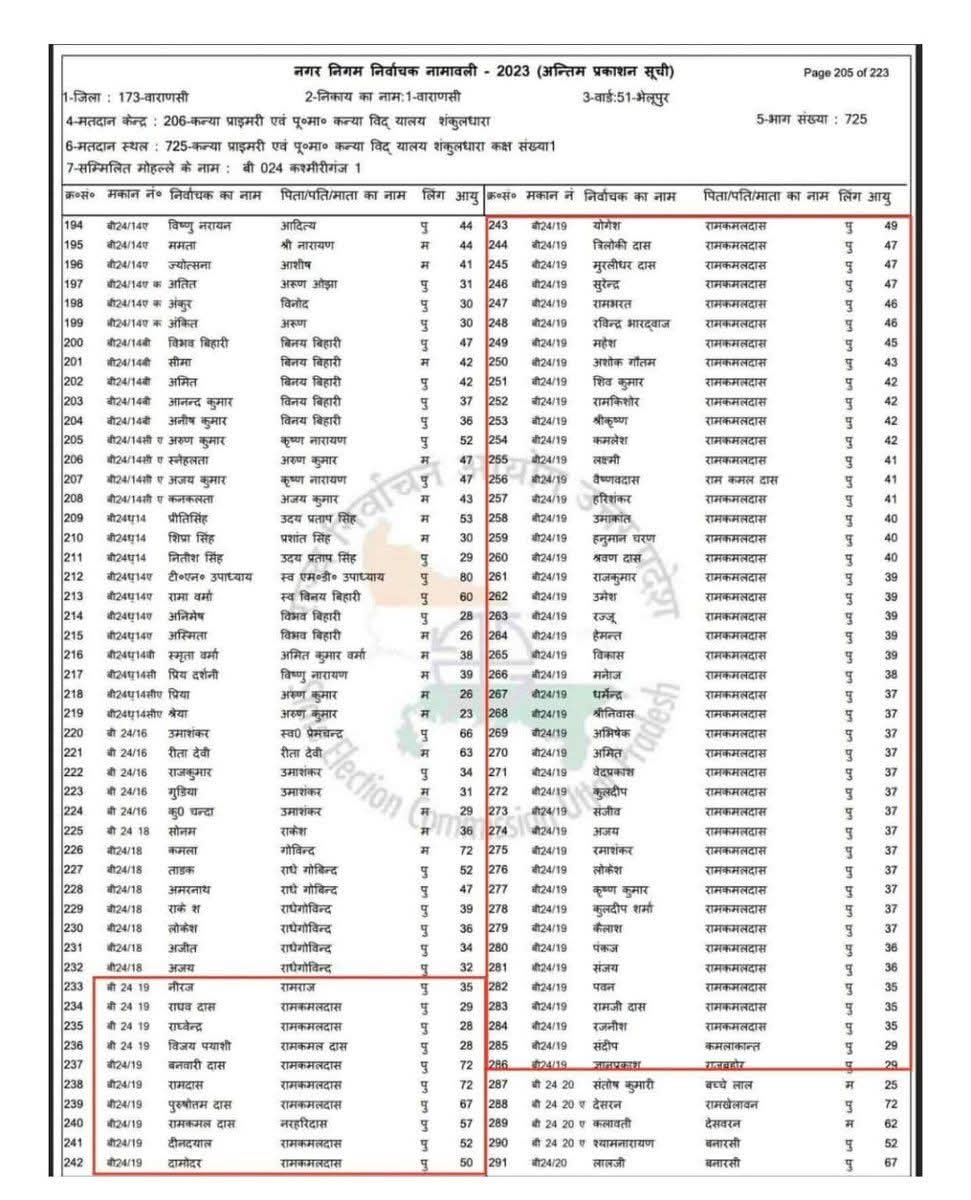🚨 #VoteChori का वाराणसी संस्करण 🚨 57 साल के राजकमलदास ने 72 साल का बेटा पैदा कर दिया! 🤯 कुल 50 "बच्चे" — सबसे छोटा 28 साल का, सबसे बड़ा 72 साल का। सभी एक ही मकान में दर्ज! 🏠🗳️ ये है वोटर लिस्ट का जादू ✨ #VoterFraud #ElectionScam