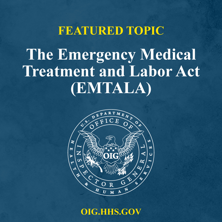 The Emergency Medical Treatment and Labor Act (#EMTALA) mandates that anyone with an emergency medical condition who arrives at an emergency department must be stabilized & treated, regardless of insurance or ability to pay. Read about OIG's EMTALA work: direc.to/fj3y