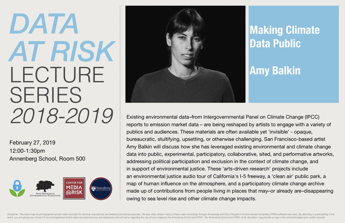 Amy Balkin's #DataAtRisk noon talk on Wed coincides beautifully with @upennlib's week on #EndangeredData -- Excited esp. for TODAY's 12:30pm conversation re: #DataAccess during #GovernmentShutdown bit.ly/2NpMNic @MargaretJanz @DataRefuge @ASCmediarisk #datastories