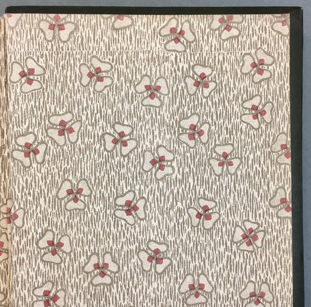 Lithografiertes Papier, zweifarbiger Druck, florales Dekor. Vorsatzpapier zu Rudolf Herzog: Die Wiskottens. Stuttgart und Berlin: Cotta, 1909. Exlibris auf dem vorderen Spiegel. #vorsatzpapier #endpaper #endoftheweekendpapers #buntpapier #decoratedpaper #lithografie #lithography