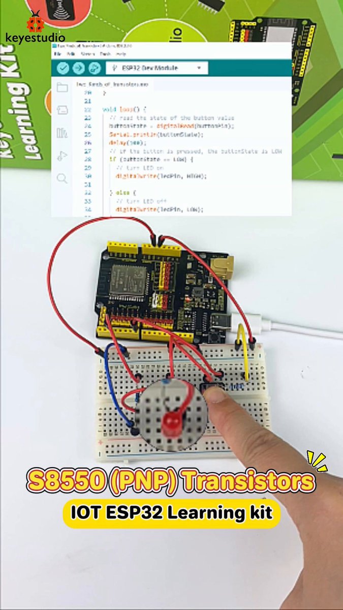 #keyestudio 🐞 Unlock the Secret of S8050 Transistor : Lighting an LED with High Level Switching! 🔥🟢 BTW,Black Friday Deals Are Live — Don’t Miss Out! #ESP32 #esp32project #arduino #programming #Technology #toys #coding #engineering #maker #tutorial #kit #Robotics #learning…