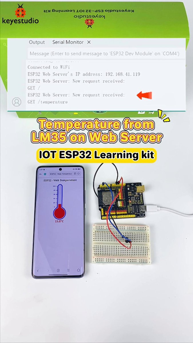 #keyestudio 🐞 Dive into IoT 🚀Monitor Real-Time Temperature on Your Phone with an ESP32 Web Server 📲🌡️ #ESP32 #esp32project #arduino #programming #Technology #toys #coding #engineering #maker #tutorial #kit #Robotics #learning #electronics #STEM #diyproject #education #DIY…