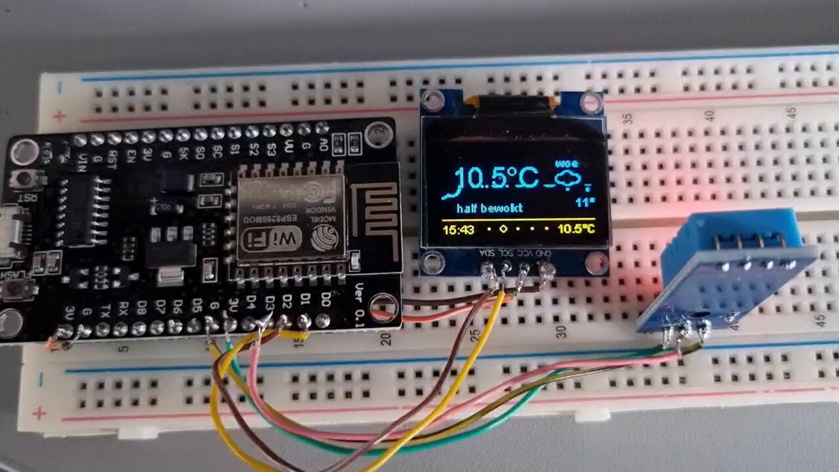 Add a DHT11 #sensor to the #arduino #ESP8266 #weather #station to see local room #temperature and #humidity Regional #information comes via #Openweater #API and #WiFi Next step is to make a #datalogger #hamradio #hamr #AmateurRadio #programming #C #electronics #SSD1306