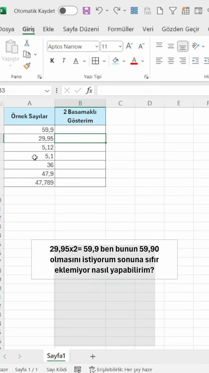 Excel’de sayıların virgülden sonra kaç basamakla görüntüleneceğini kolayca ayarlayabilirsiniz. 👍 Videoyu beğenmeyi ve abone olmayı unutmayın! #Excel #sheets #excelsheet #shortcuts #Office365 #MicrosoftOffice #exceltricks #tutorial #pratikbilgiler #kesfetteyiz #kesfet #keşfet