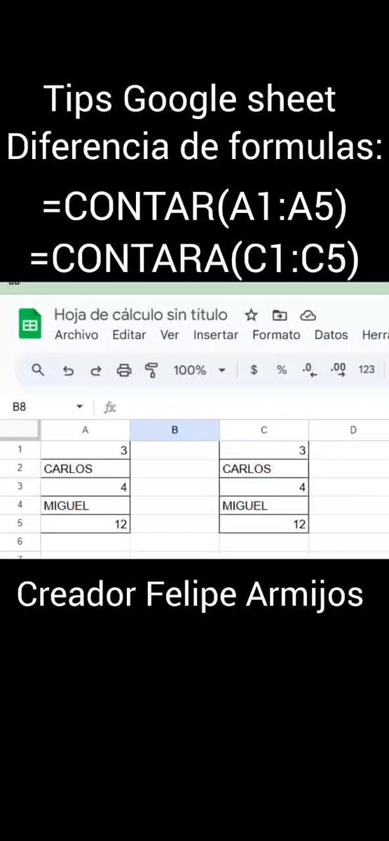 #GoogleSheets #ExcelVsGoogleSheets #TrucosDeExcel #AprendeGoogleSheets #FormulaCONTARCONTARA felipearmijosarmijos.blogspot.com