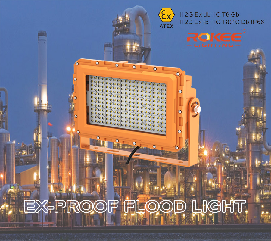 EX02-A series 50W - 400W flood or bay lights for harsh and hazardous areas, Ex db IIC T6 Gb; Ex tb IIIC T80℃ Db, Zone 1/ 21 /2 / 22. #explosionprooflight #hazardousarealight #exproofbaylight #zone1baylight #zone2baylight