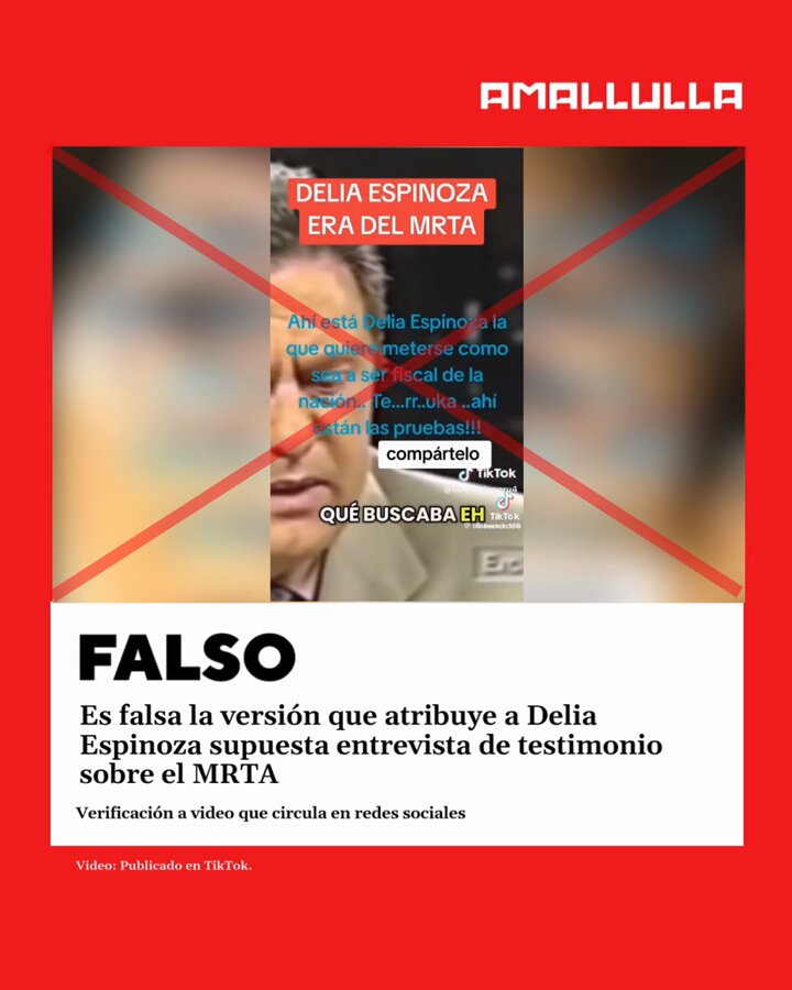 #Factchecking ❌Es #FALSA la versión que atribuye a la suspendida fiscal de la nación Delia Espinoza una supuesta entrevista de testimonio sobre el MRTA. La @Red_AmaLlulla detectó que la persona que aparece en el video no es Delia Espinoza. 👇🧵