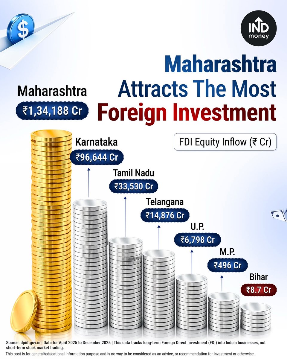 See the massive gap between Maharashtra and Uttar Pradesh. Between Karnataka and Madhya Pradesh. Between Tamil Nadu and Bihar. #FDI