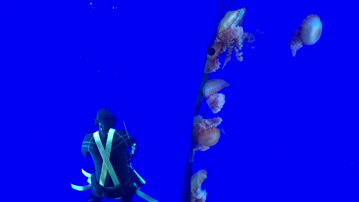 What's going on? Here we have one of our Aquarists cleaning the sea nettle tank. That barrier is to protect the diver from any possible stings and to give the diver room to scrub. While the stings can be painful the jellies are rarely dangerous. #FeaturedFishFriday