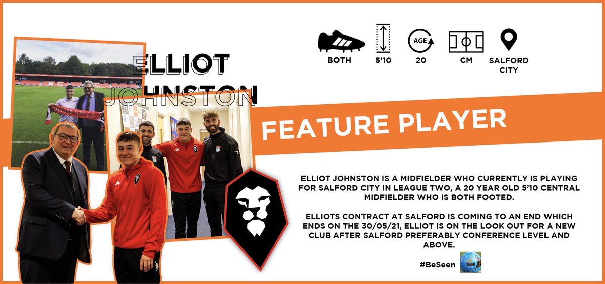 #FeaturePlayer Time! 🤝 Today’s feature player is 20 year old Elliot Johnston who is currently at League Two side Salford City. The central midfielder is looking for a new club after his contract ends at Salford City! #BeSeen