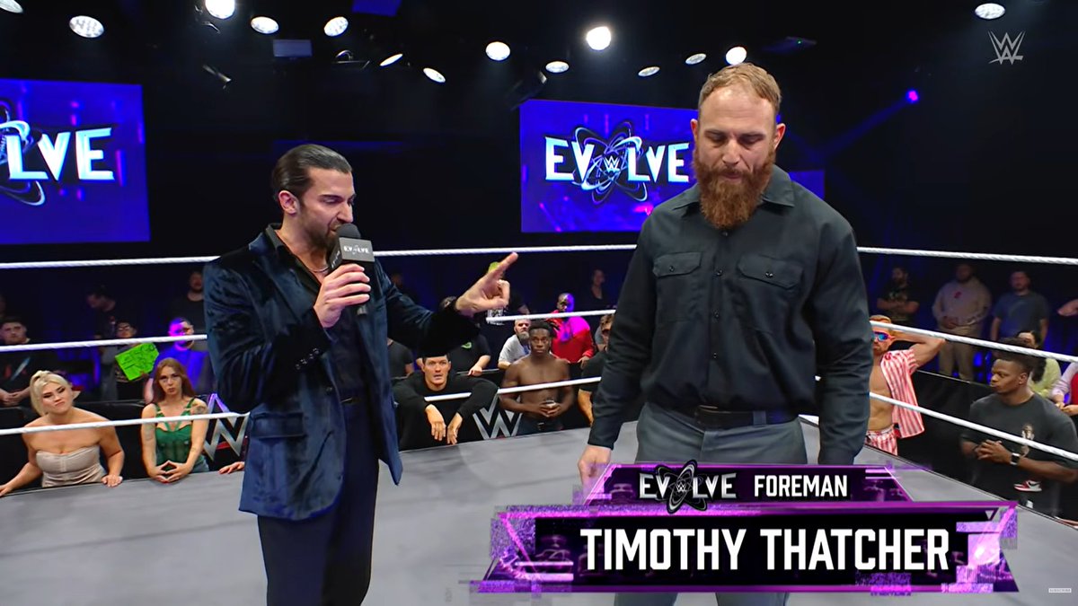 Timothy Thatcher hat bei #WWEEvolve am 11. März 2026 verkündet, dass er fortan der EVOLVE Foreman ist, bevor er als seine erste Amtshandlung ankündigte, dass die beiden Champions Kendal Grey und Jackson Drake EVOLVE nach einer #FinalEvolution verlassen werden.