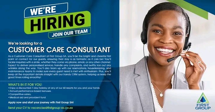 Apply now and start your journey with First Group SA! Send your CV to [email protected] #JobSearch #JobHunt #FirstGroup #CustomerCareConsultant #Hiring