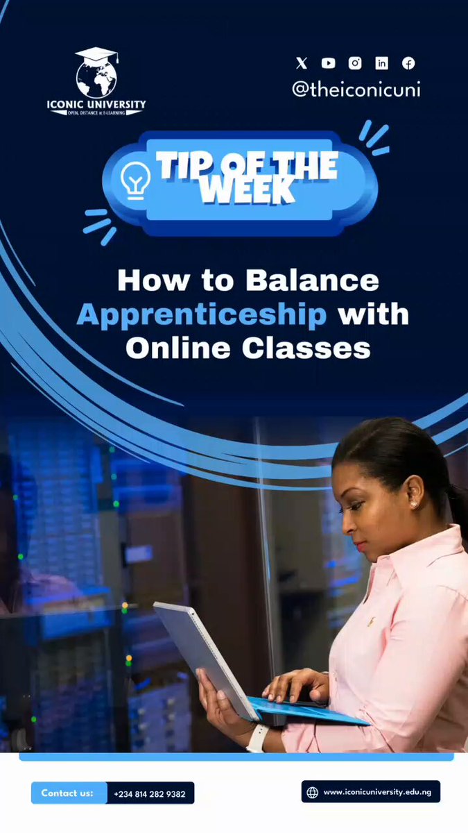 Juggling apprenticeship and online classes? Here’s your tip of the week! Learn how to balance work and study effectively with these easy steps. Stay on top of your game and make every moment count! 💪🏽📚 #StudyTips #FlexibleLearning #IconicUniversity #OnlineLearning